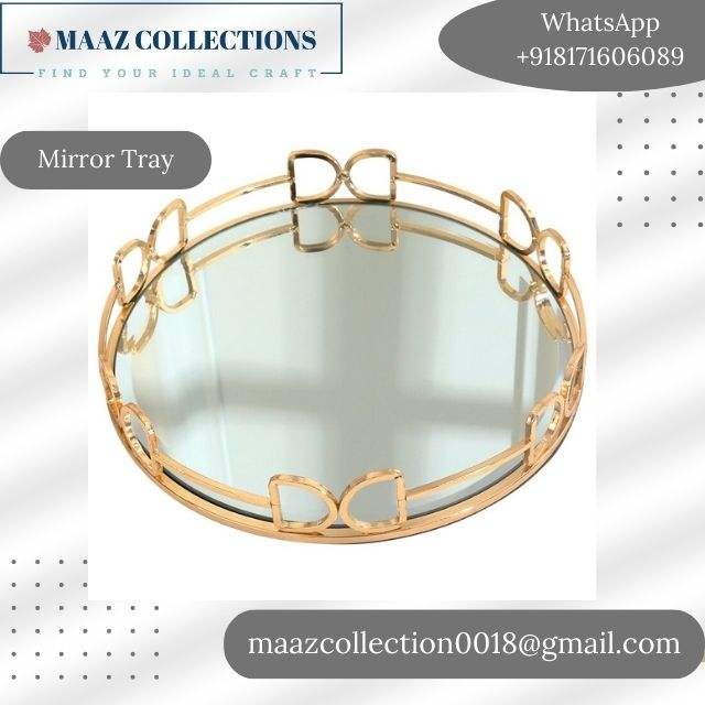 Modern Elegant Premium Reflective Serving Tray Custom Size Metal and Glass for Stylish Home Decor
