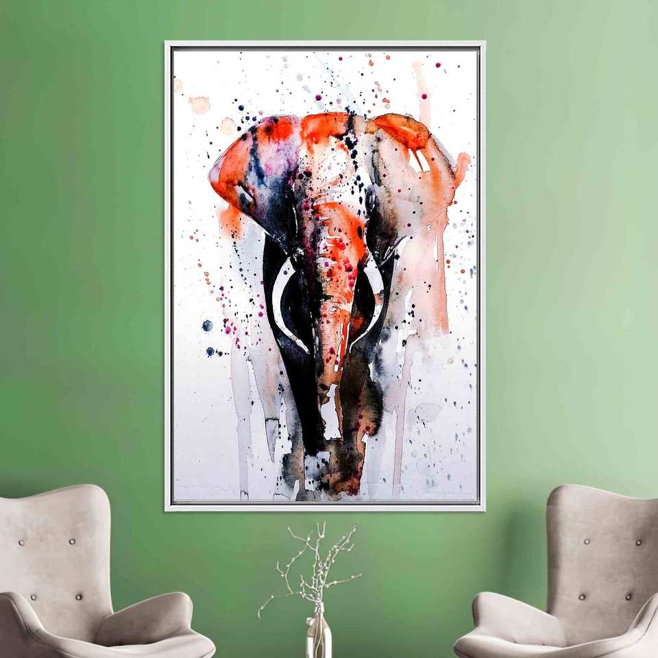 Modern Elephant Wall Art: Vibrant Printed Canvas Decor,WHITE FRAMED CANVAS