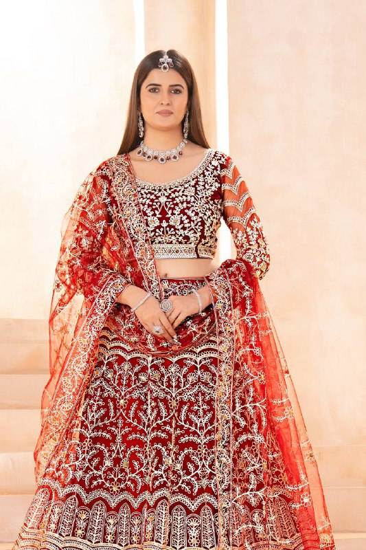 Modern Empire Intricately Embroidered V-neck Floor-Length Princess Waistline Lehenga Choli Zipper Tassel Breathable Eco-Friendly