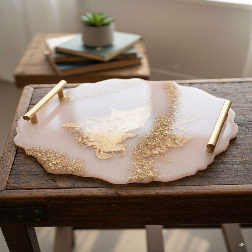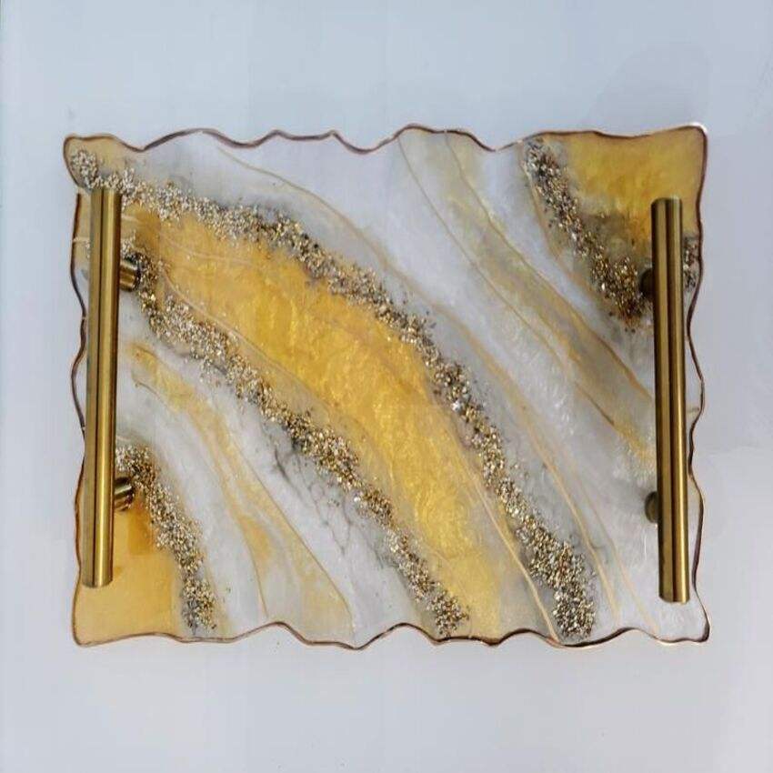Modern Epoxy Resin Multifunctional Storage Tray for Coffee Table Living Room Beverages Snacks Organizing Decorative Accessories