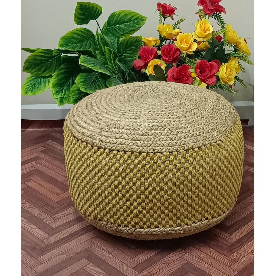 Modern European American Home Outdoor Hall Ottomans Jute POUF Ottoman Chindi Work One Handle Knitted Stool for Bedroom Living