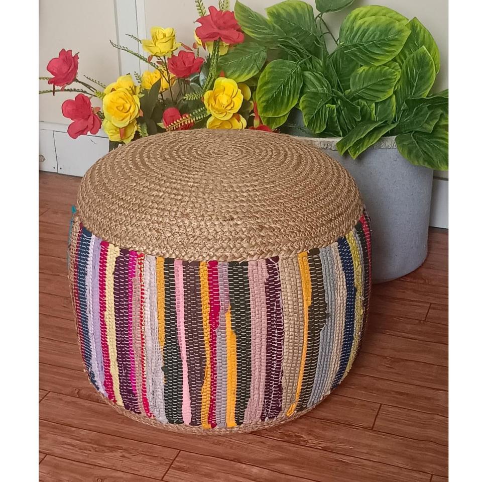 Modern European American Home Outdoor Hall Ottomans Macrame POUF Ottoman Jute Work One Handle Knitted Stool for Bedroom Living