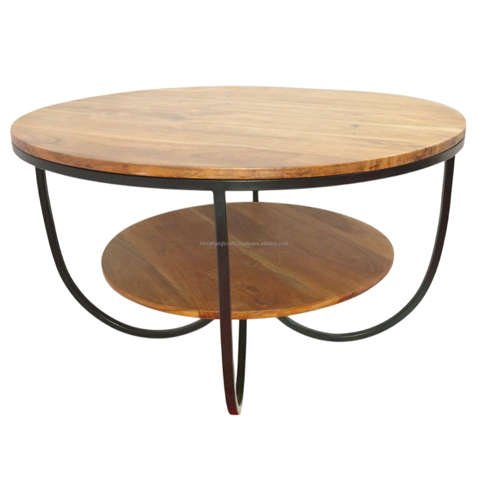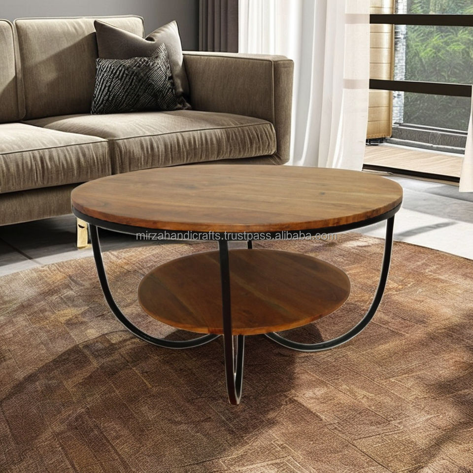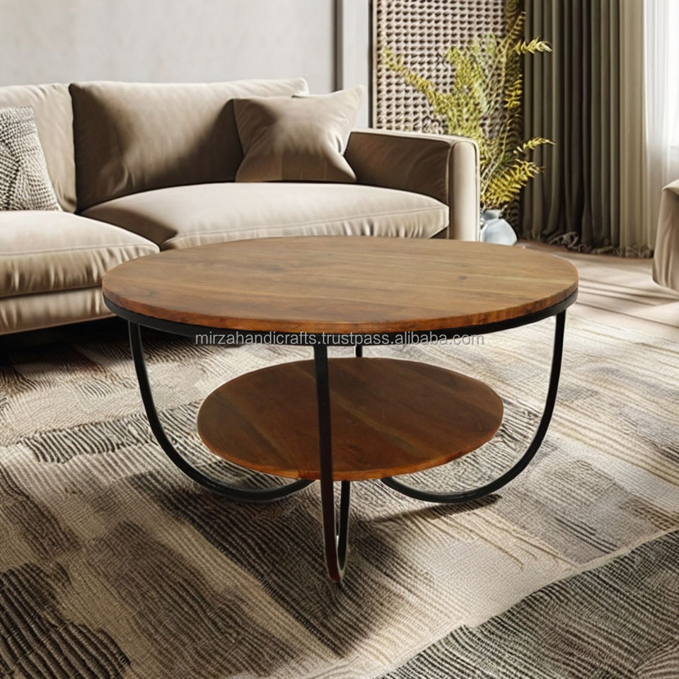 Modern European Design round Wooden Center Table 2 Open Shelf Nesting Coffee Table Multipurpose Open Shelf Storage Couch Table