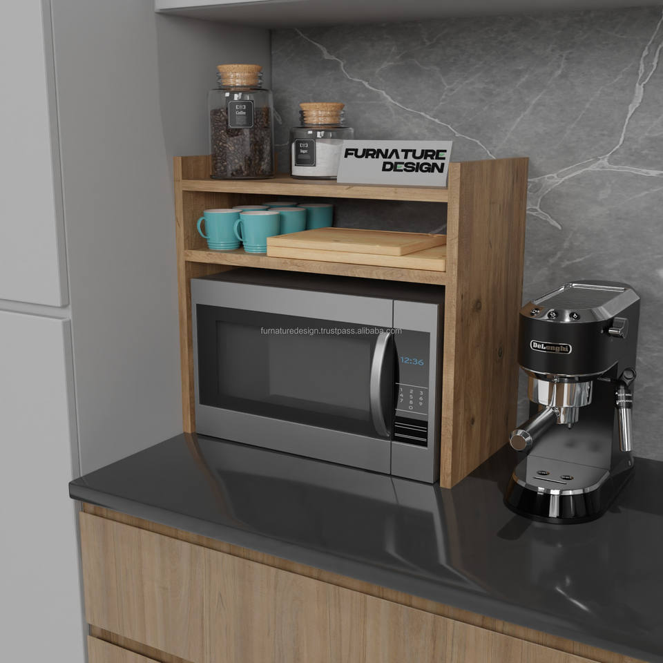 Modern European Style Chipboard Counter Top Kitchen Shelf Multi-Functional Storage Rack Microwave Oven Stand Household Use