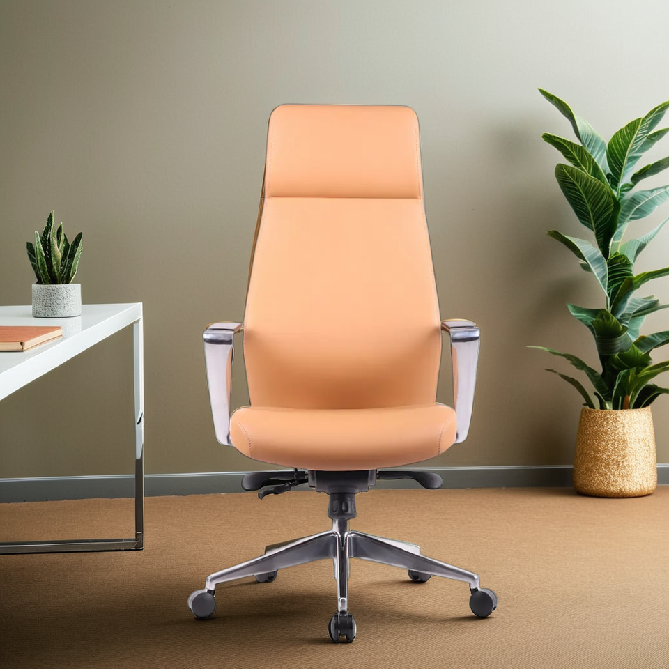 Modern Executive PU Chair for Office Use with Metal Base, High Back, and Swivel Wheels