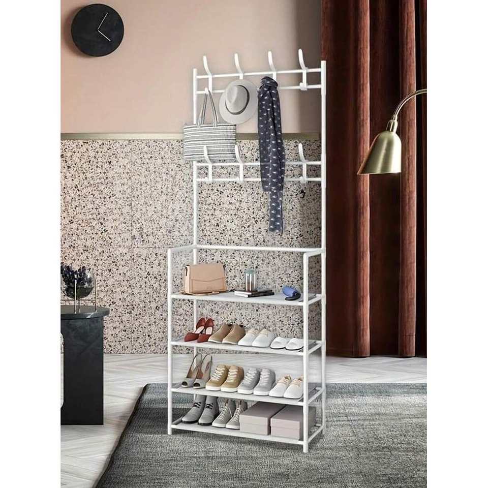 Modern Extendable Convertible Shoe Rack for Living Room Metal Home Furniture with Hat Hanger Storage Entrance Rack Feature