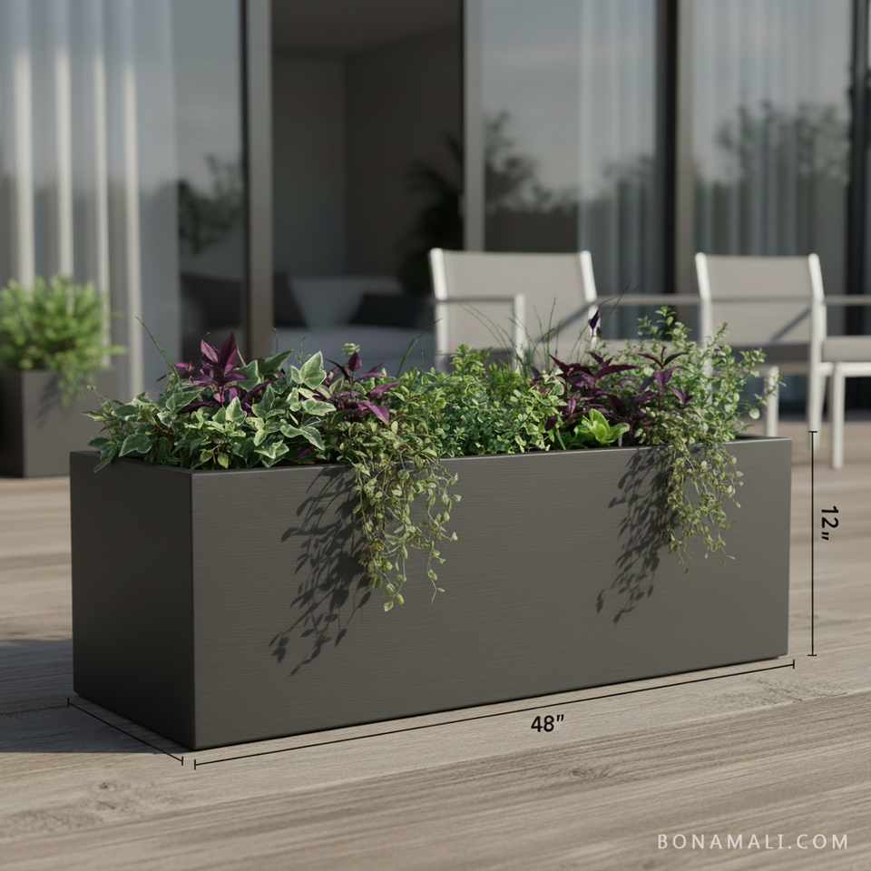Modern Extra Large Fiberglass Planter Vase Lightweight High Quality Garden Pot Size : L 48 X W 12 X H 12 Inch