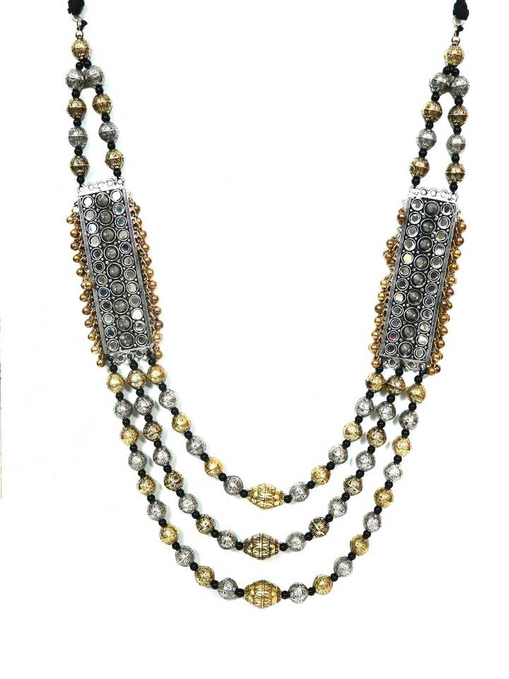 Product Name:Oxidised Silver Fusion Multi-Layered Necklace Set