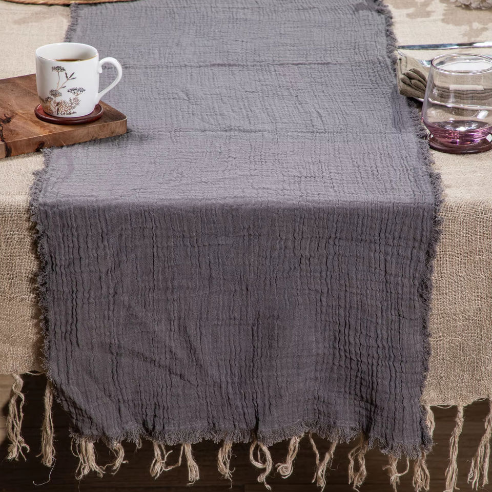 Modern Farmhouse Double Gauze Table Runner for Earthy Settings with Greenery and Wooden Accents For Home Decor Home Textile