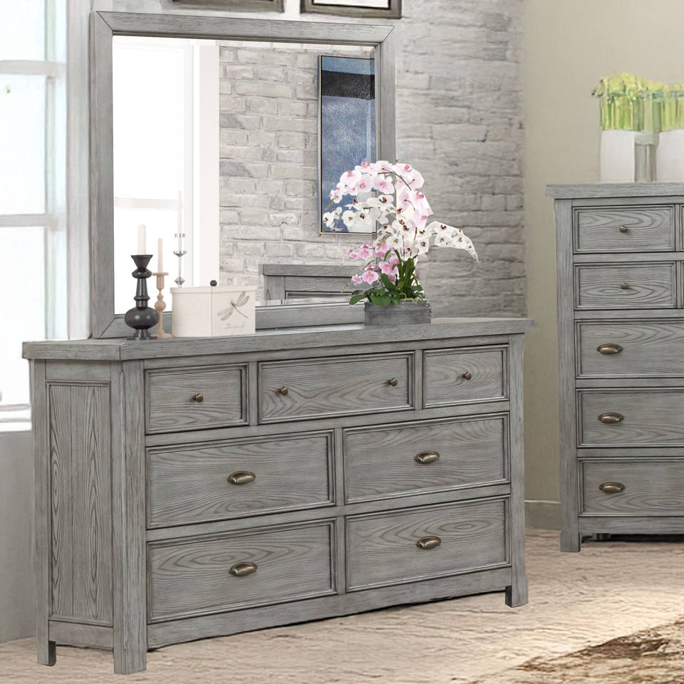 Modern Farmhouse Gray Chest - 7-Drawer & Mixed Hardware Bedroom Storage Cabinet, Rustic Casual Furniture