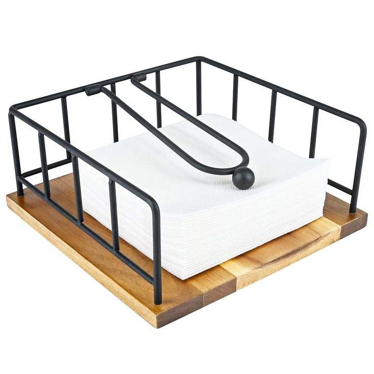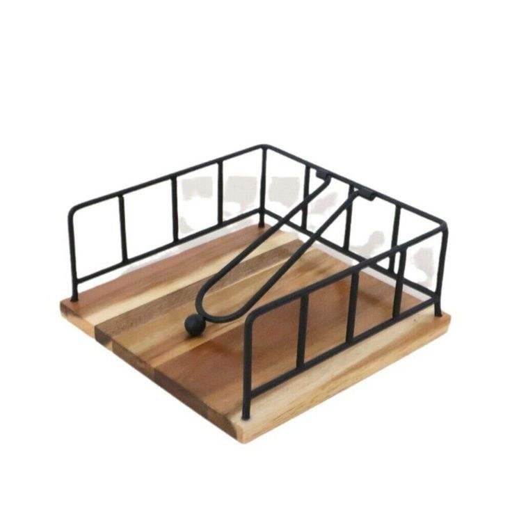 Modern Farmhouse Metal Napkin Holder With Wooden Base And Weighted Arm For Tabletop Dining Kitchen Counter And Restaurant Use