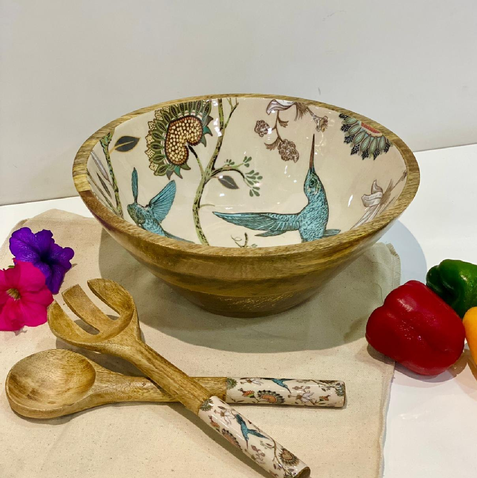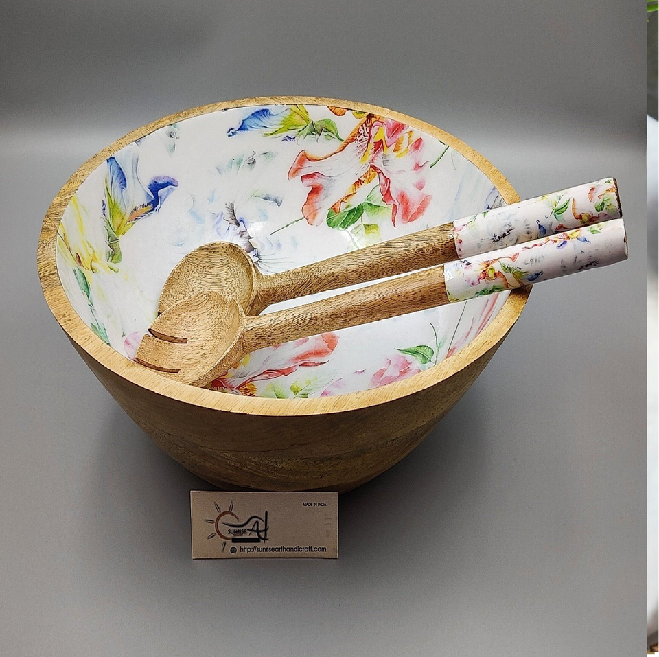 Modern Farmhouse Natural Wood Salad Serving Bowl Handmade with Polish Natural Texture for Home Restaurant or Camping