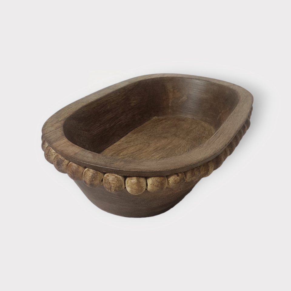 Modern Farmhouse-Style Beaded Wood Bowls Antiqued Lantern Design Kitchen Serving Candle Holders Rustic Brown Weddings Christmas