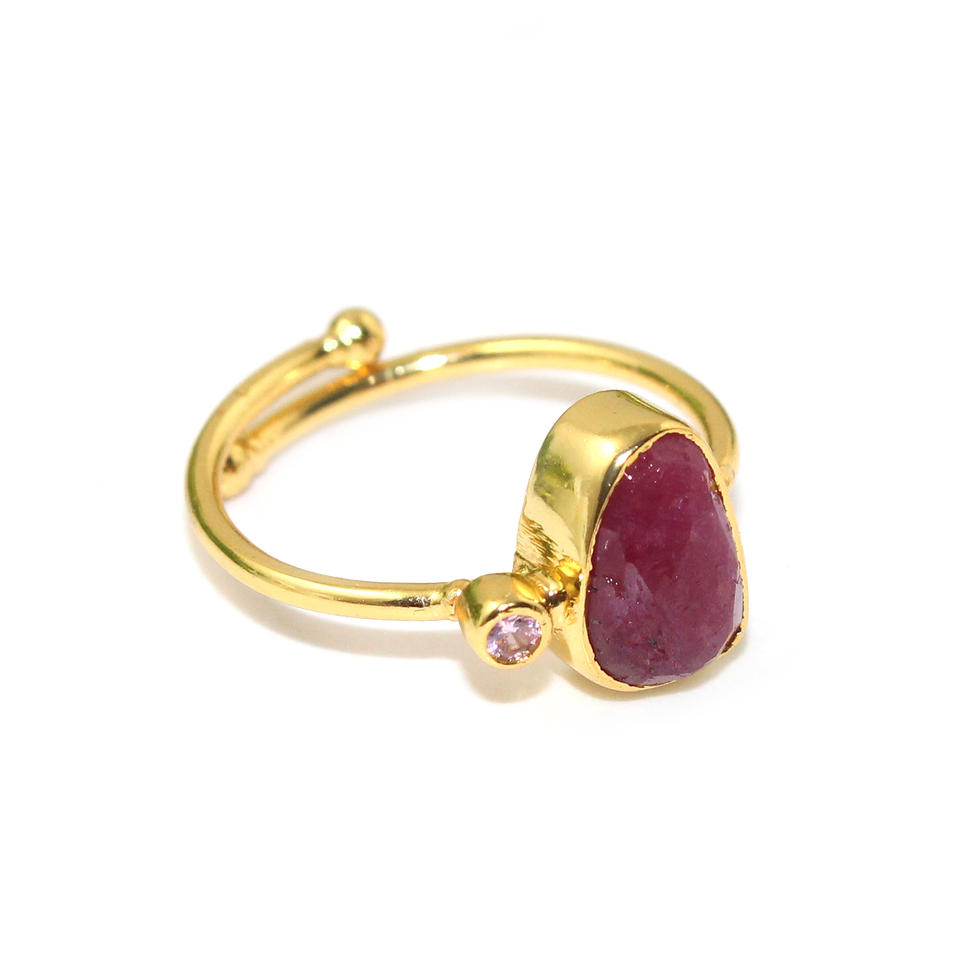 Modern Fashion 24k Yellow Gold Plated Ruby Stone Pink CZ Classic Ring Wholesale Brass Jewelry For Women