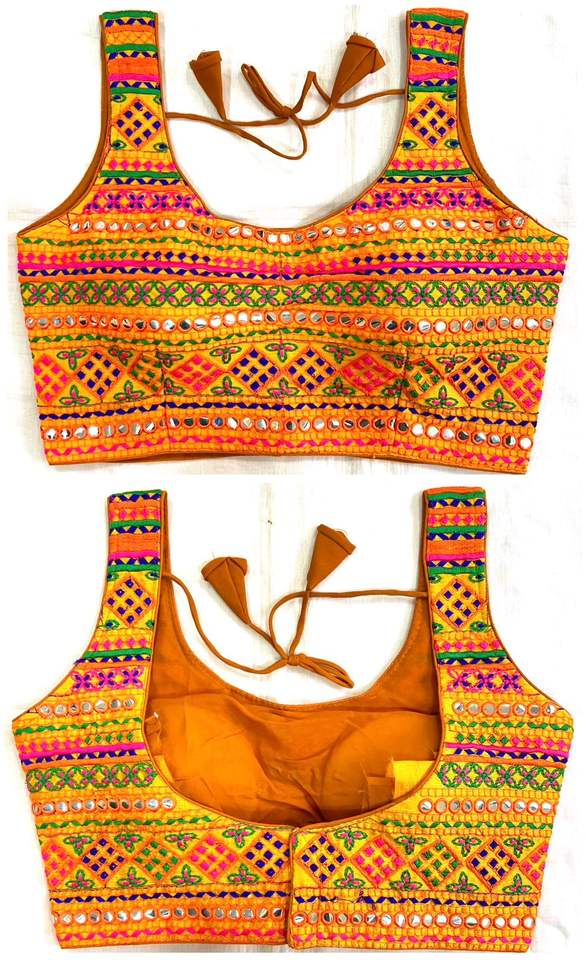 Modern Fashion Blouse with Embroidery Sequined Thread Foil Mirror Work Printed Silk Sleeveless Free Size Logo Decoration