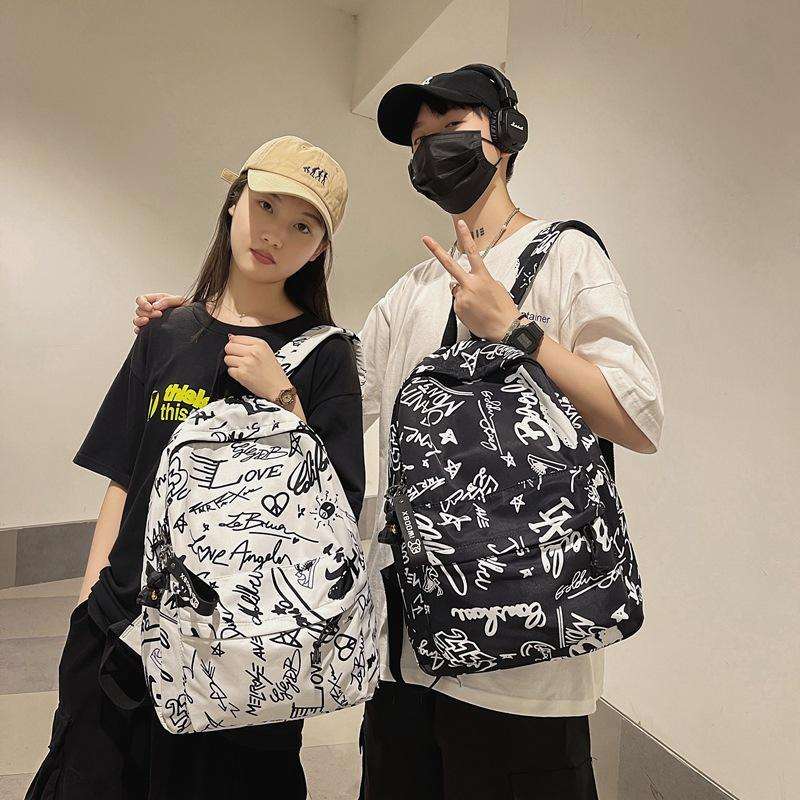 Modern Fashion Graffiti Print Nylon Backpacks Large Capacity High School Teens School Bags 17 Inch Kids Backpack