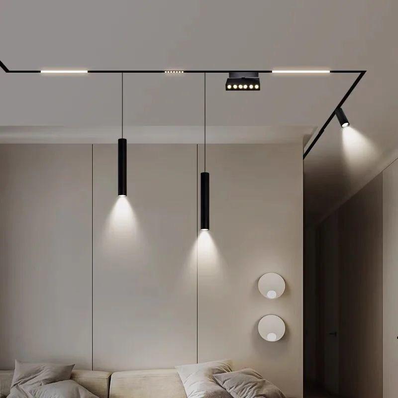 Modern Fashion Single Phase Track Light System 3-Wire Aluminum Track Rail with LED Adapter Driver and Nipple connector lights
