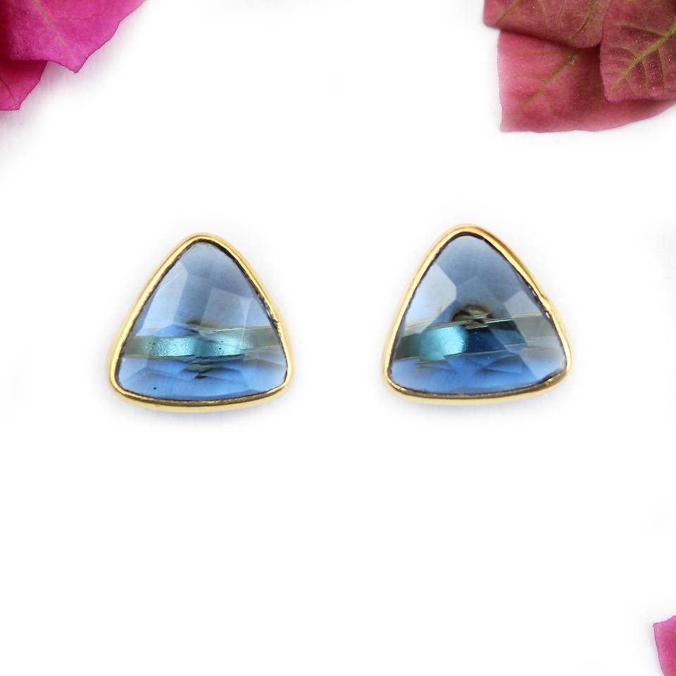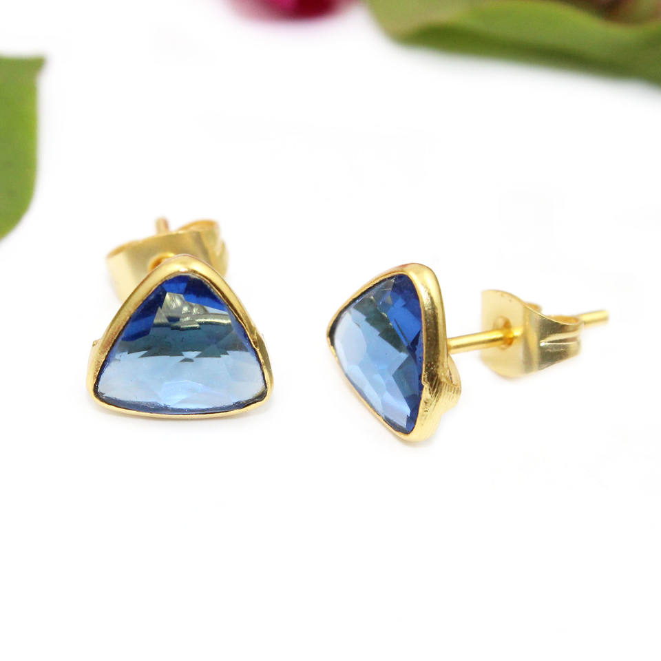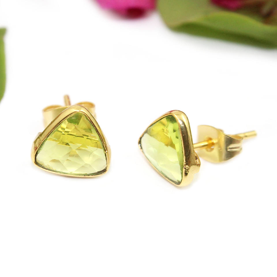 Modern Fashion Triangle Shape 6 MM peridot Hydro Quartz 24K Gold Plated Bezel Setting Stud Earrings For Women Wholesale Jewelry