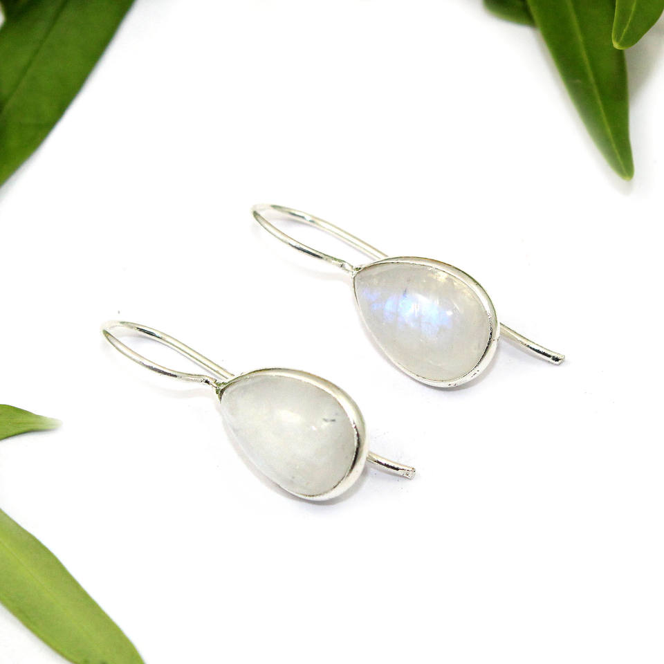 Modern Fashion White Moonstone Gemstone Hydro Quartz Pear Shape Silver Plated Bezel Earring Christmas Party Women Wholesale