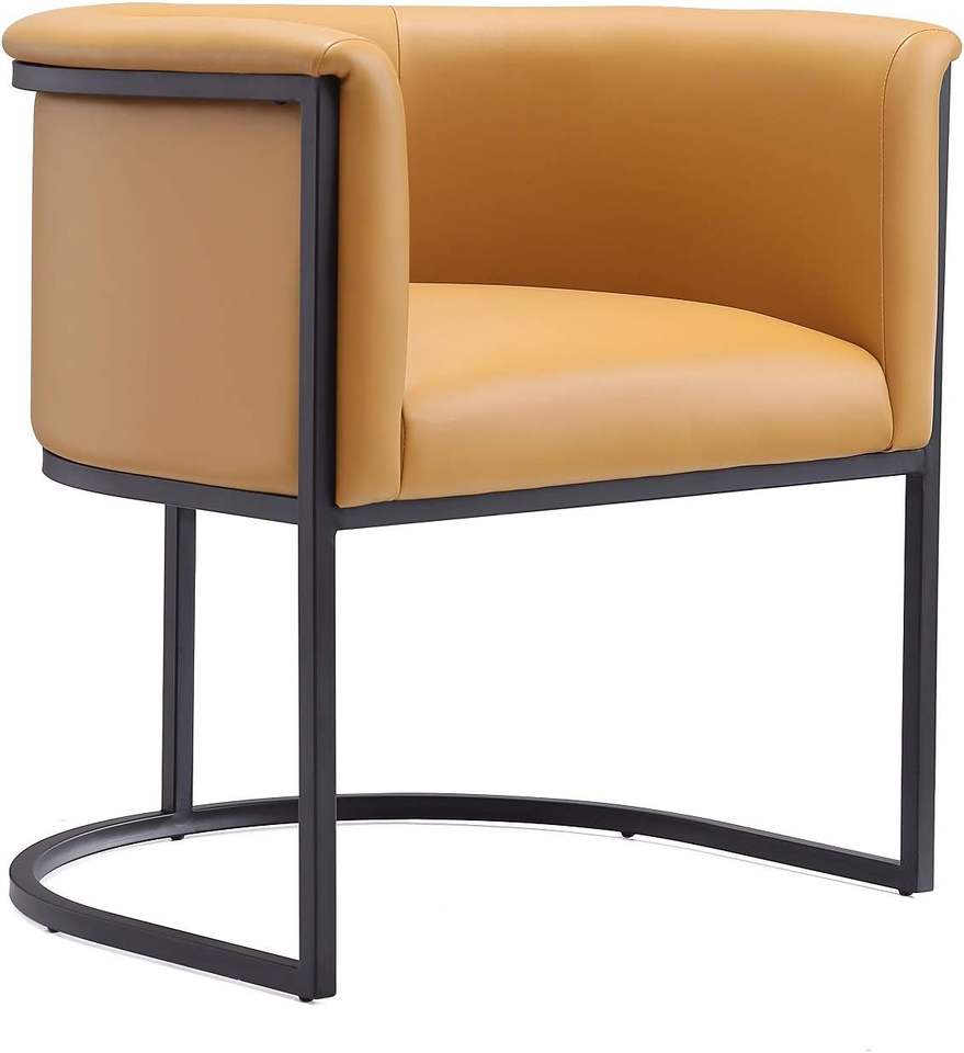 Modern Faux Leather Dining Chair Sculptural Silhouette Metal Frame Padded Cushions Removable Cover Fully Assembled Accent