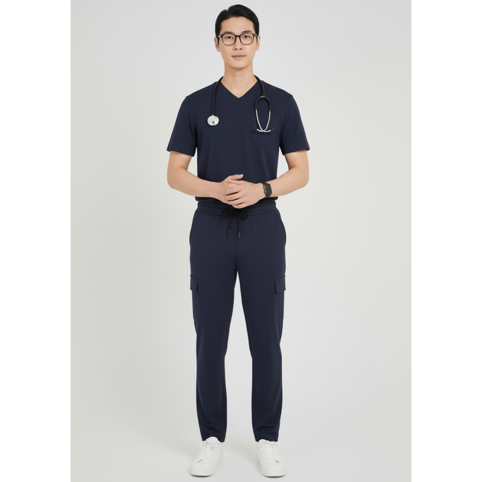 Modern Fit Medical Scrubs Manufacturers Comfortable Fit Custom Tags Cargo Jogger Pants Hospital Scrub Set Vietnam Manufacturer