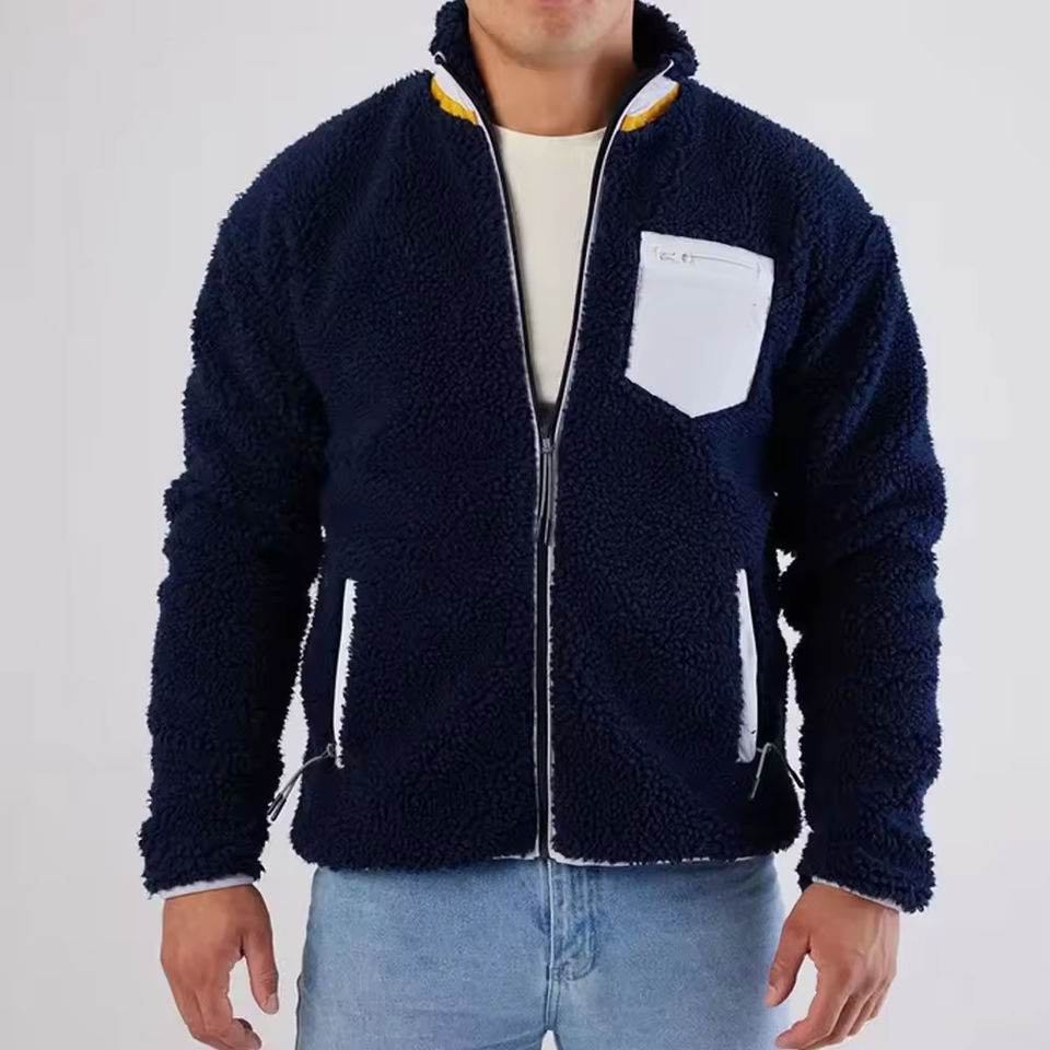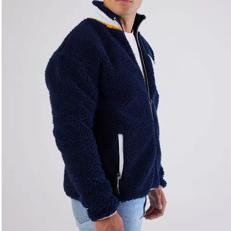 Modern Fit Sherpa Fleece Jacket For Men With Stylish High Collar Full Zip And Smooth Finish Ideal For Any Wardrobe Choice