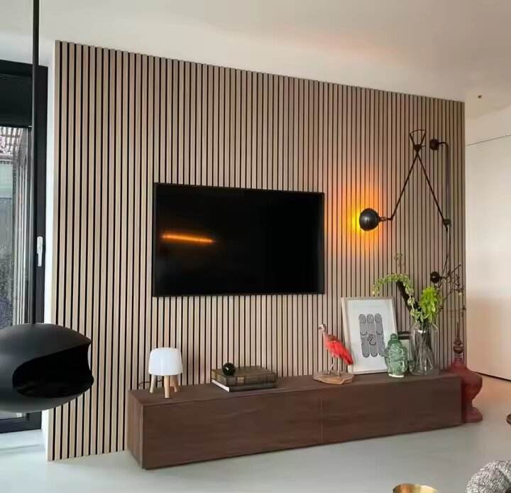 Modern Flexible PET Rubber Acoustic Wall Decor Furniture Curved Soundproof Ceiling Panels for Living Room Veneer Finish