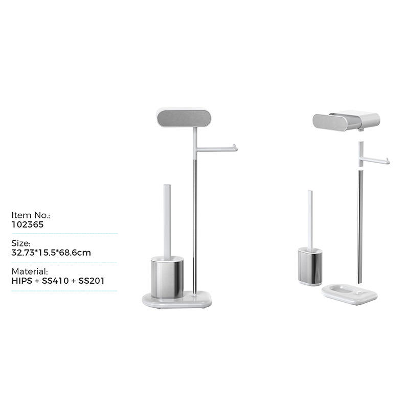 Modern Floor Standing Toilet Paper Holder With Brush Storage Silver White Rectangular Design Easy To Clean Bathroom Accessory