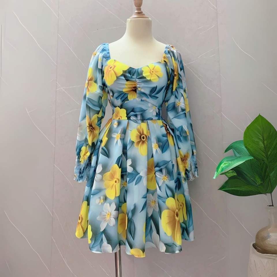 Modern Floral Check Dress with Elegant Patterns High Quality Comfortable Fit Natural Waistline for Day or Night for Autumn