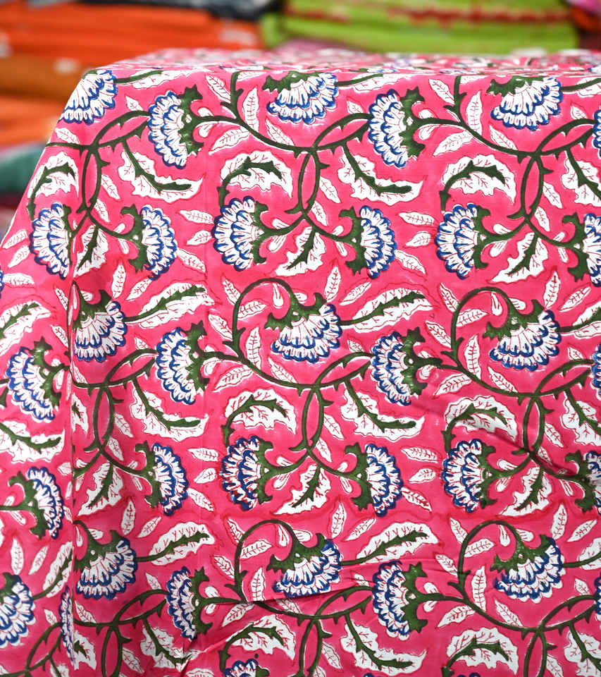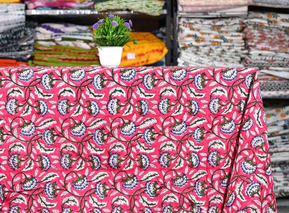 Modern Floral Kalamkari Block Print Artisan-Made Traditional Cotton Tablecloth for Home Cafe & Hotel Decor