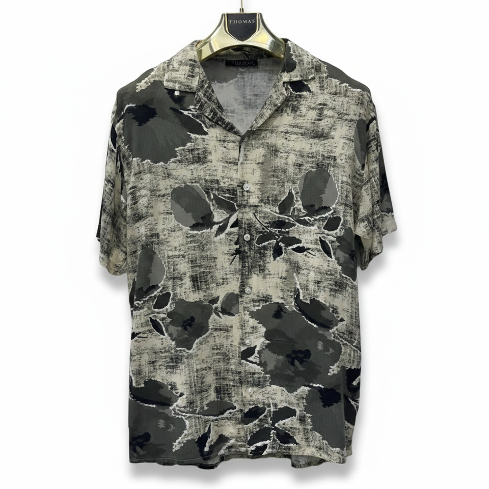 Modern Floral Mens Short Sleeve Shirt Relaxed Fit Lightweight Satin Stylish Summer Design Casual Wear Holiday Outfit