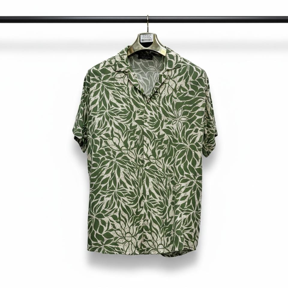 Modern Floral Mens Short Sleeve Shirt Relaxed Fit Satin Fabric Eco-Friendly Stylish Summer Design Casual Wear Holiday