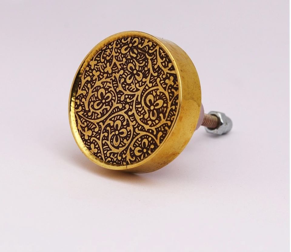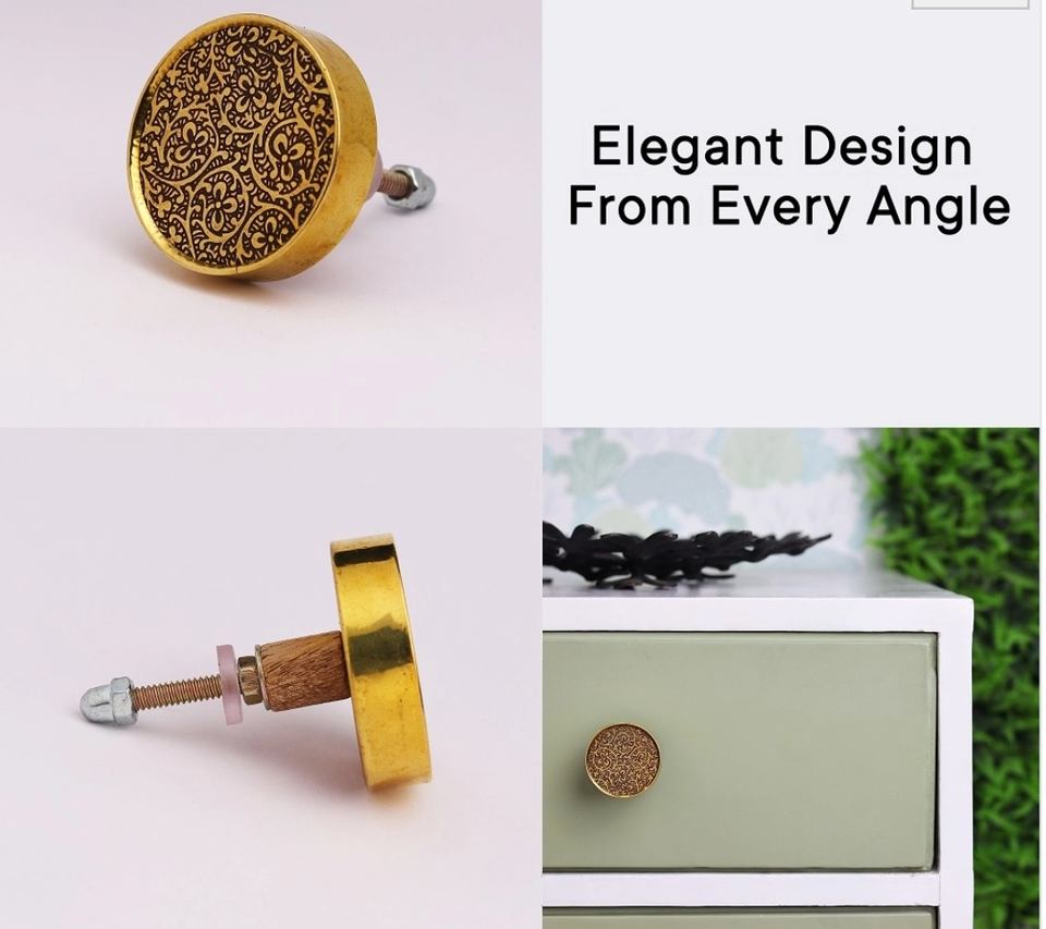 Product name:Floral Round Brass & Wood Cabinet, Drawer Knob