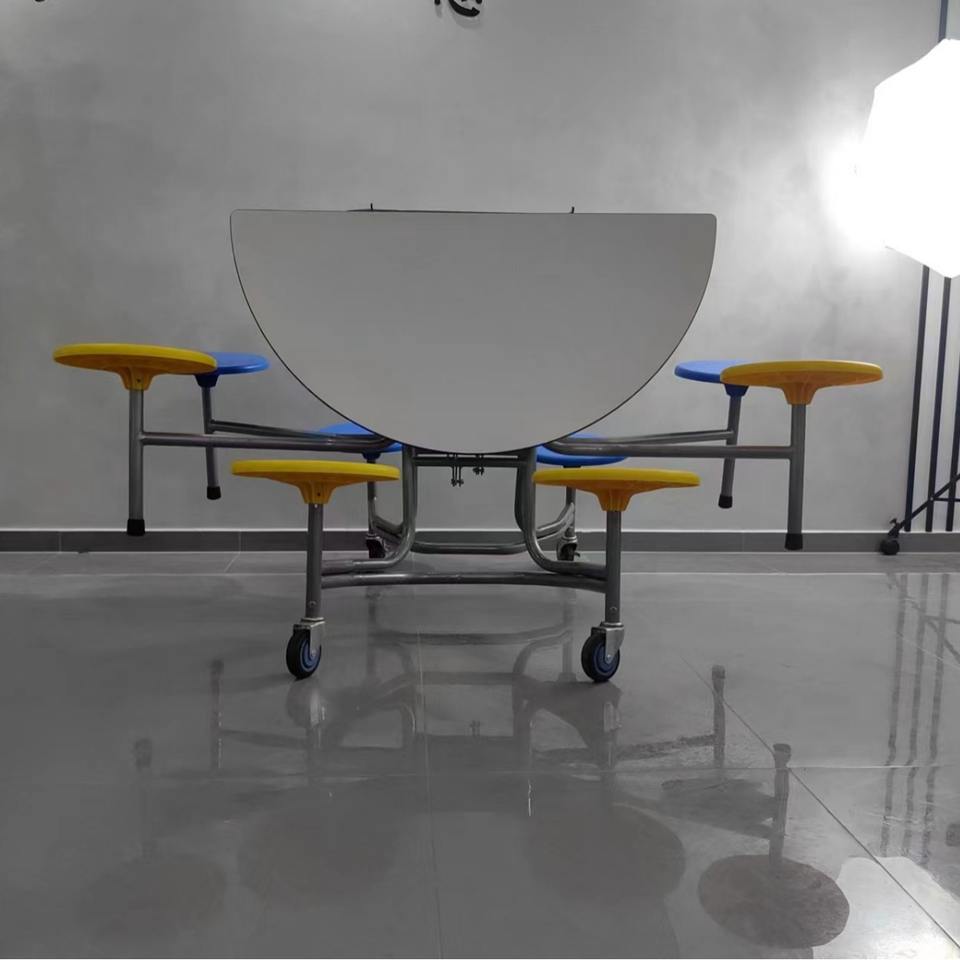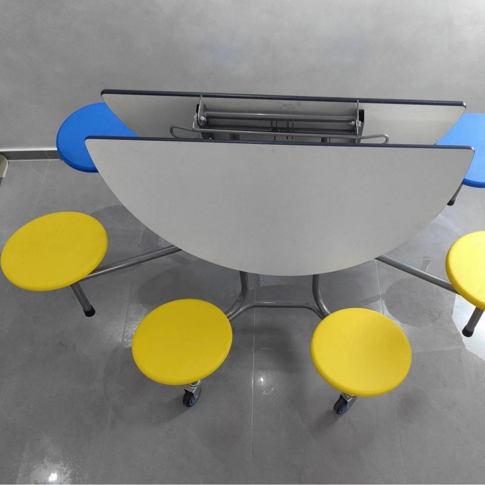 Modern Foldable Round Dining Table Set 120x120x71 Cm With 8 Colorful Stools For Dining Room