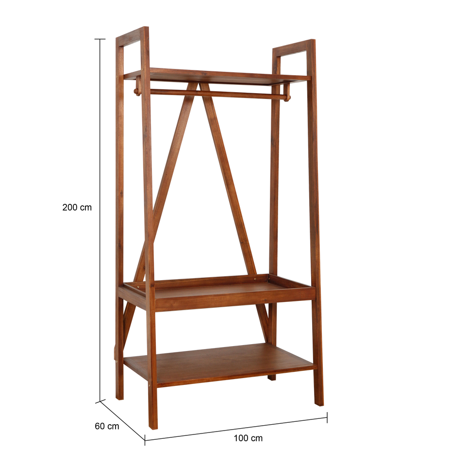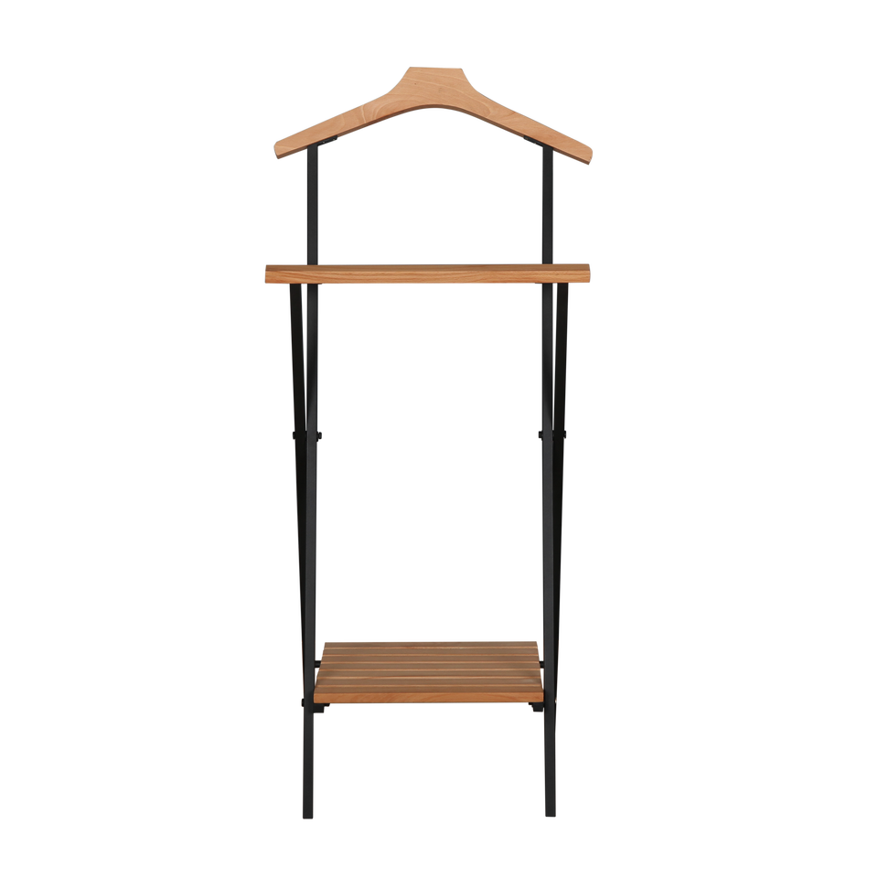 Modern Free Installation Foldable Clothes Hanger, Wood Clothing Storage Stand with Wheels Freely Hanging Garment Rack