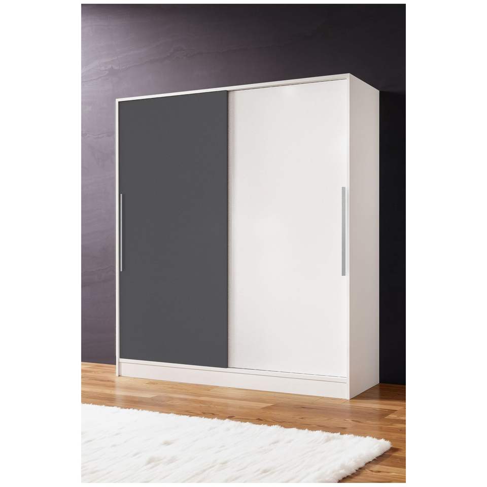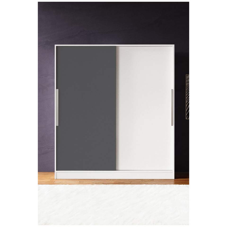 Modern Freestanding Closet White 11-Shelf 2-Drawer Sliding Door Wardrobe for Small Convertible Folding Bedroom Storage Cabinet