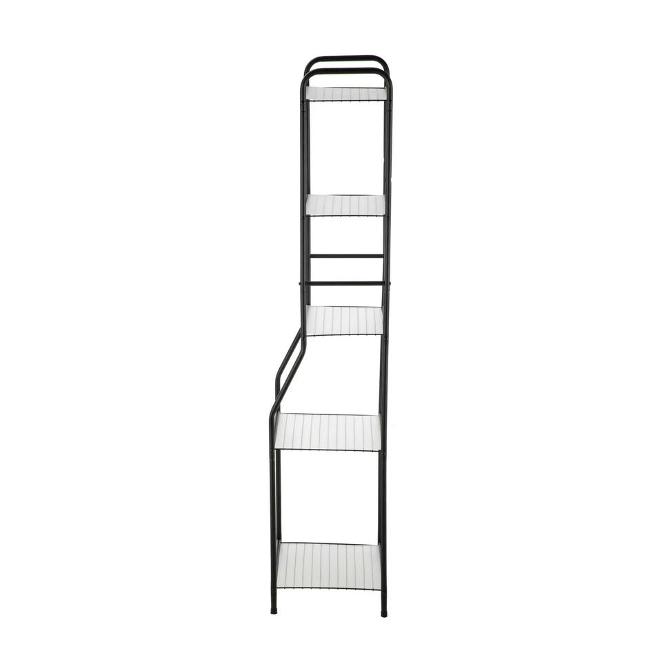 Modern Freestanding Matte Black Iron 5-Shelf Bathroom Storage Tower for Towels and Daily Items