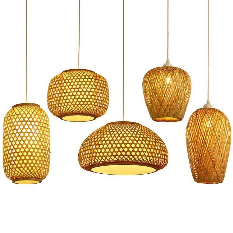 Modern French Handmade Wicker Bamboo Wooden Shade High Temperature Resistant Hanging Ceiling Lamp Retro Lighting Home Woven