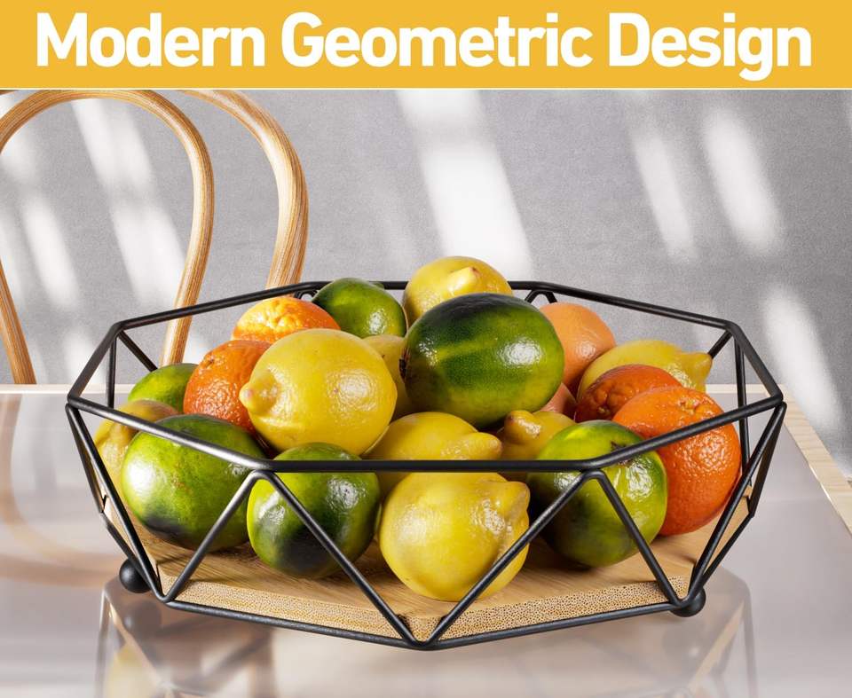 Modern Fruit Basket with Fresh Fruits on Wooden Base