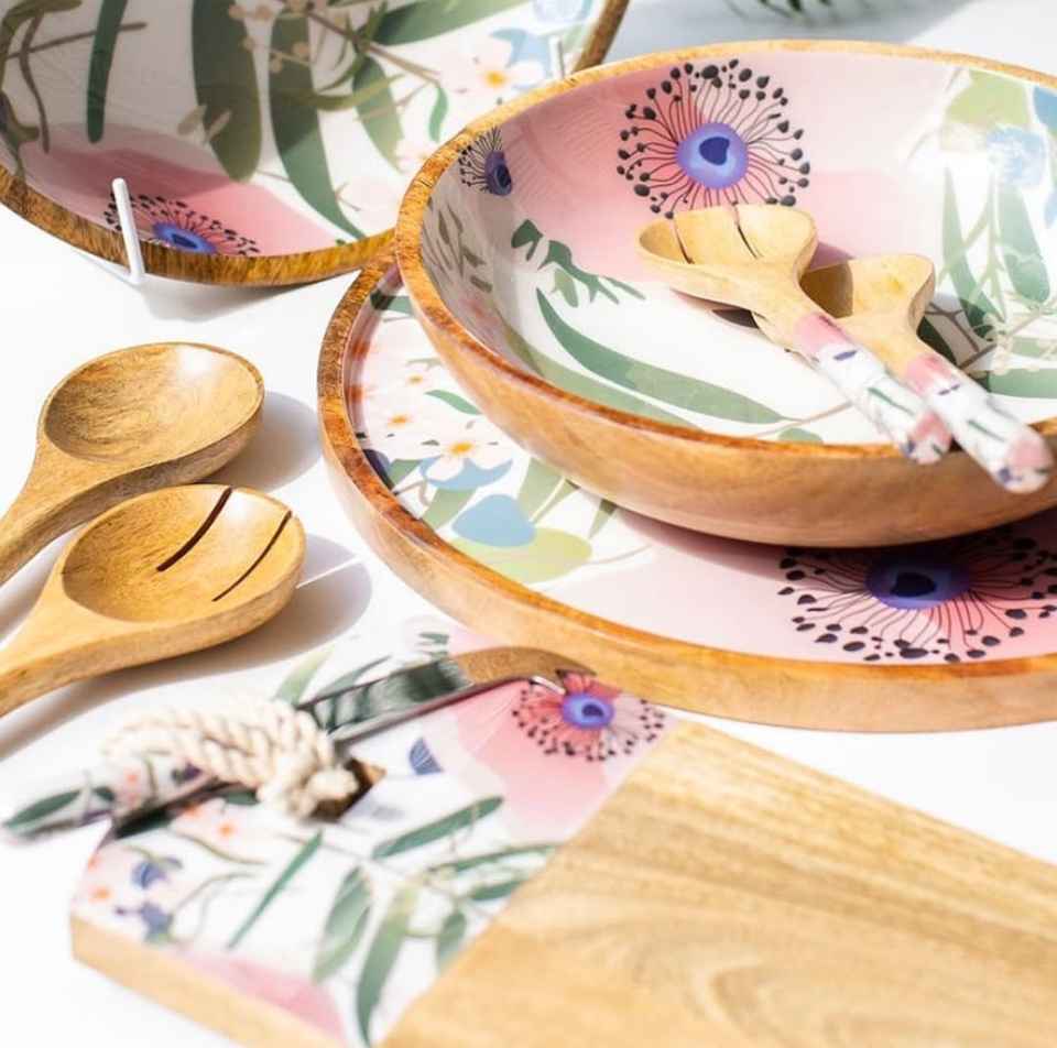 Modern Fusion Serving Dining Set Stunning Disposable Natural Mango Wood and Vibrant Enamel Wooden Bowls Sets