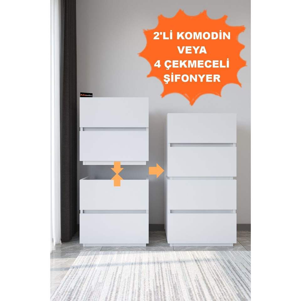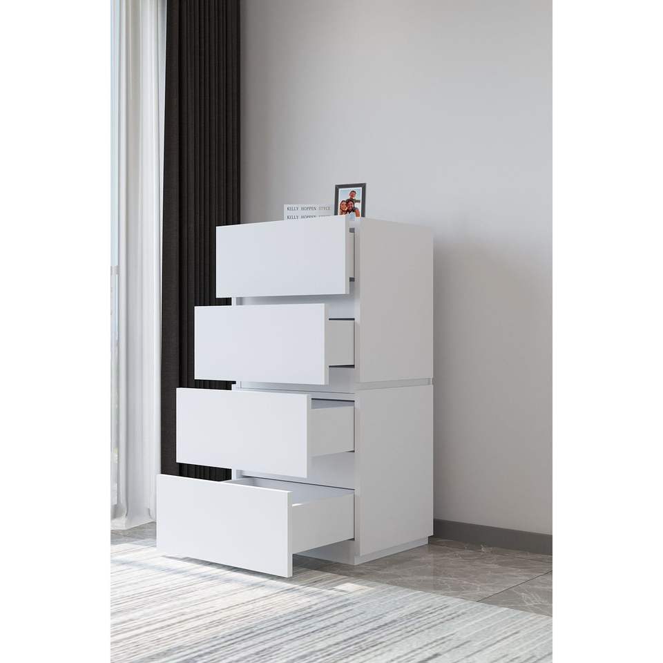 AekaOnline Modern Galata 4-Drawer Dresser Elegant Nordic Design White Wood Nightstand MDF Oak Iron Material Bedroom Storage