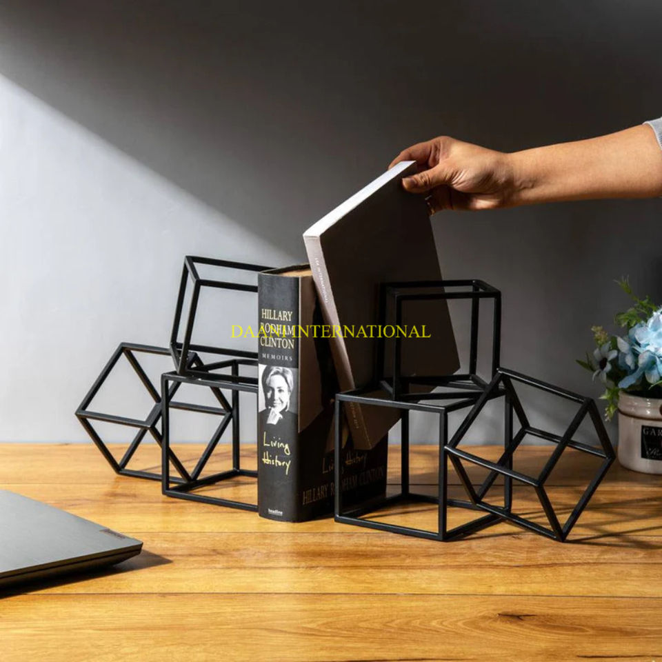 Modern Geometric Cube Bookends Black Metal Decorative Book Holder Industrial Minimal Style For Office Desk Bedroom & Bookshelf