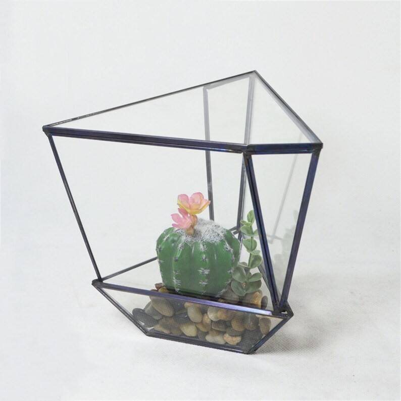 Modern Geometric Glass Tabletop Planter with Black Frame Perfect for Succulent Display Minimalist Home Office Decor Piece