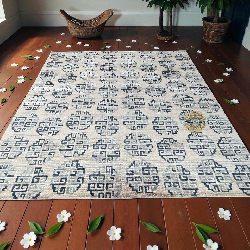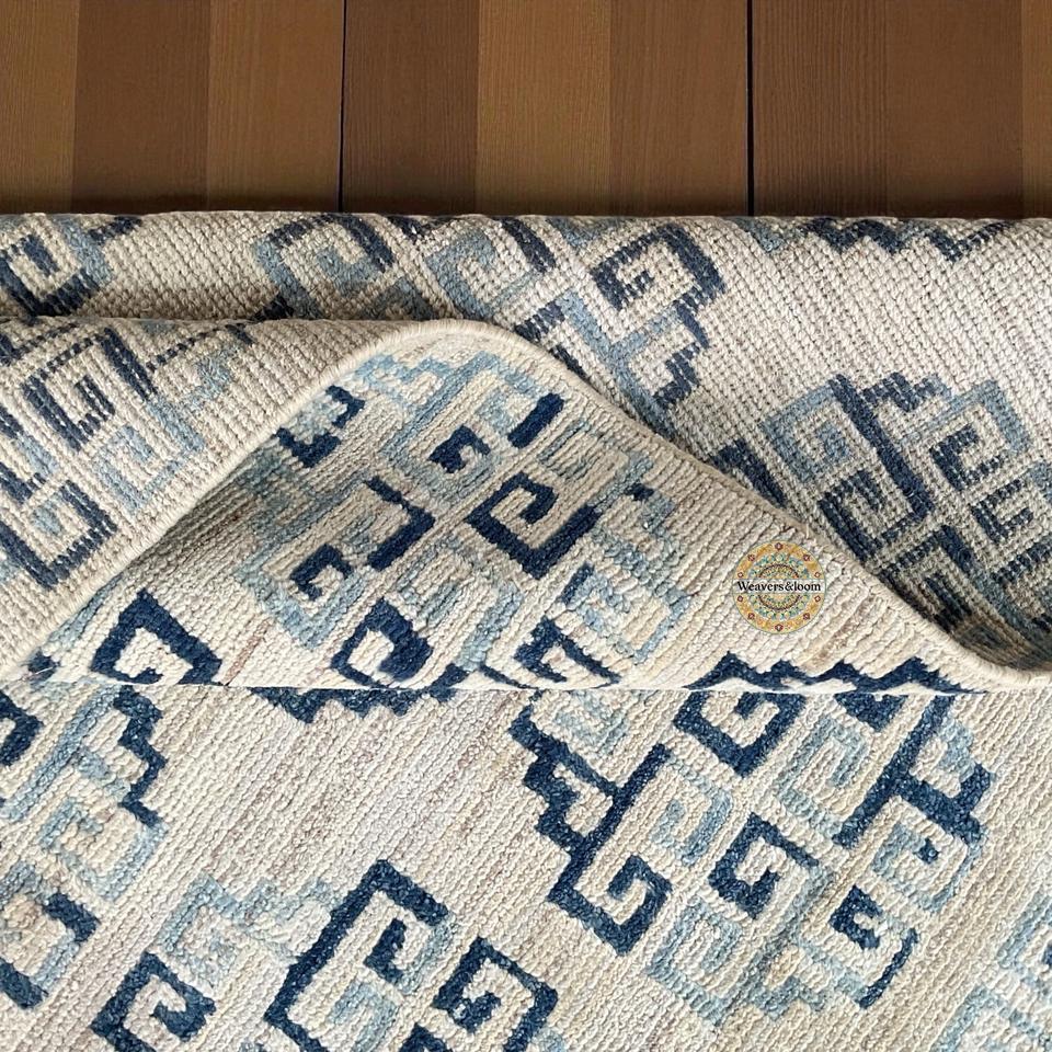 Modern Geometric Hand-Knotted Wool Area Rug Blue for Bedroom Living Room Dining Room & Office
