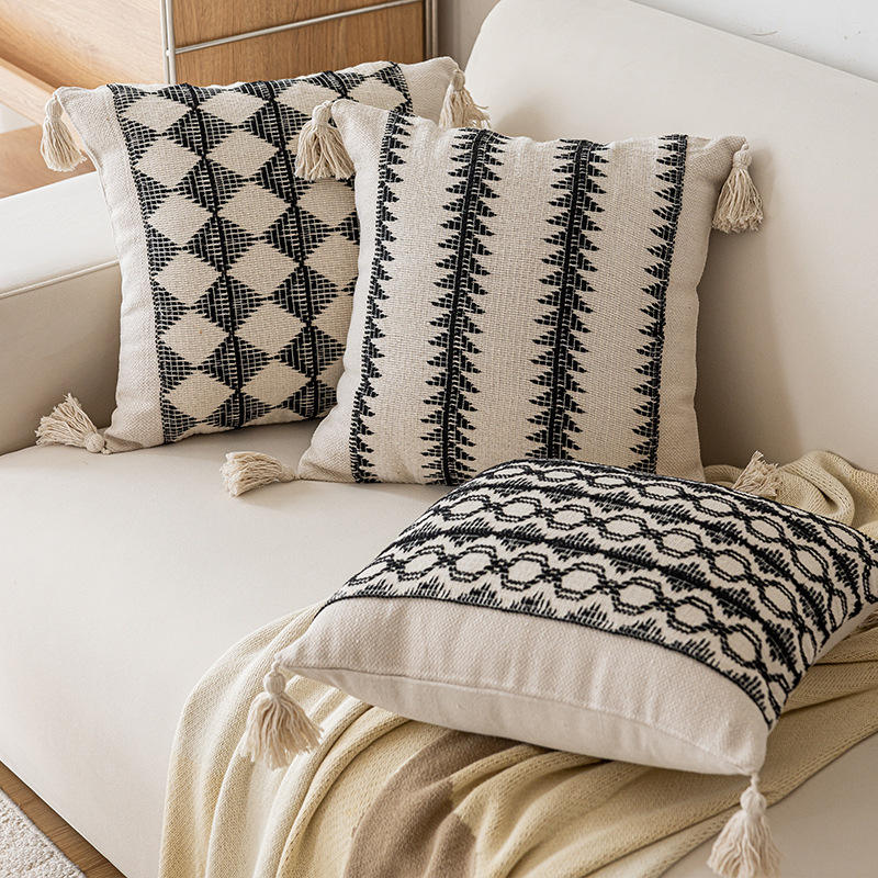 Modern Geometric Throw Pillow Square Cotton Linen Cover Removable Decorative Cushion For Sofa Bedroom Home Decor