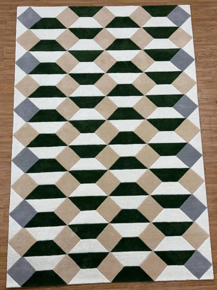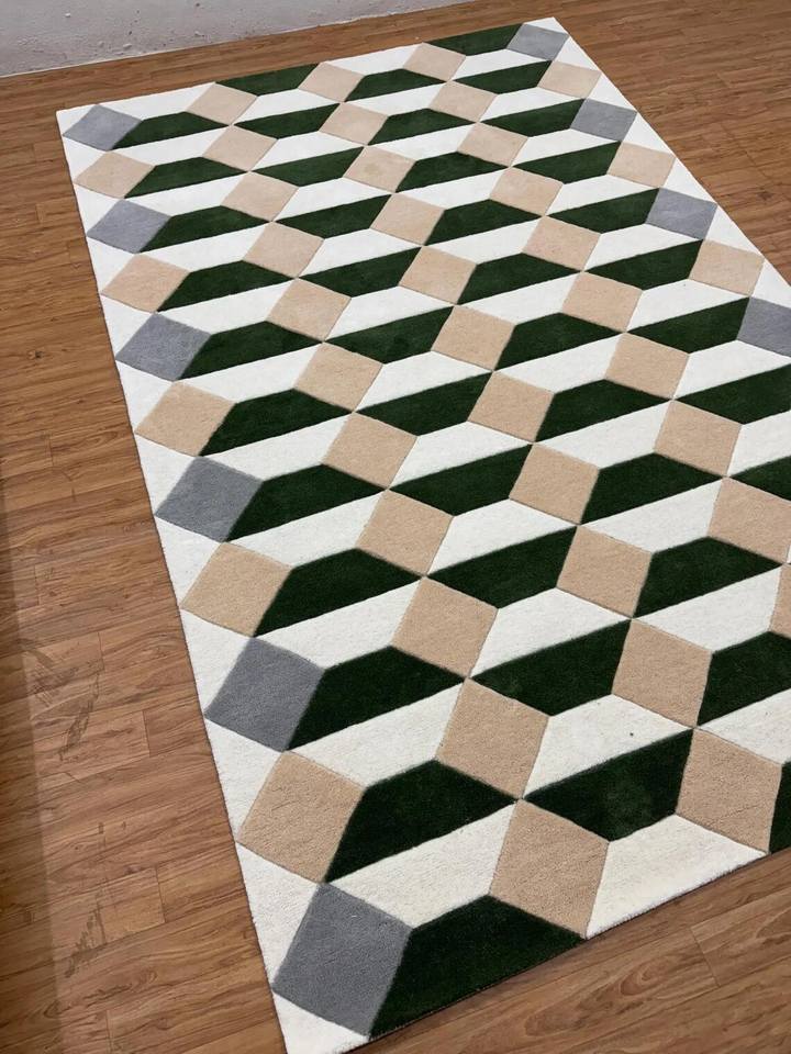 Custom Modern Geometrical Wool Rug Hand Tufted 8x10/10x14 Large Sizes for Living/Kids/Office Bedroom Bespoke Door Home Floor