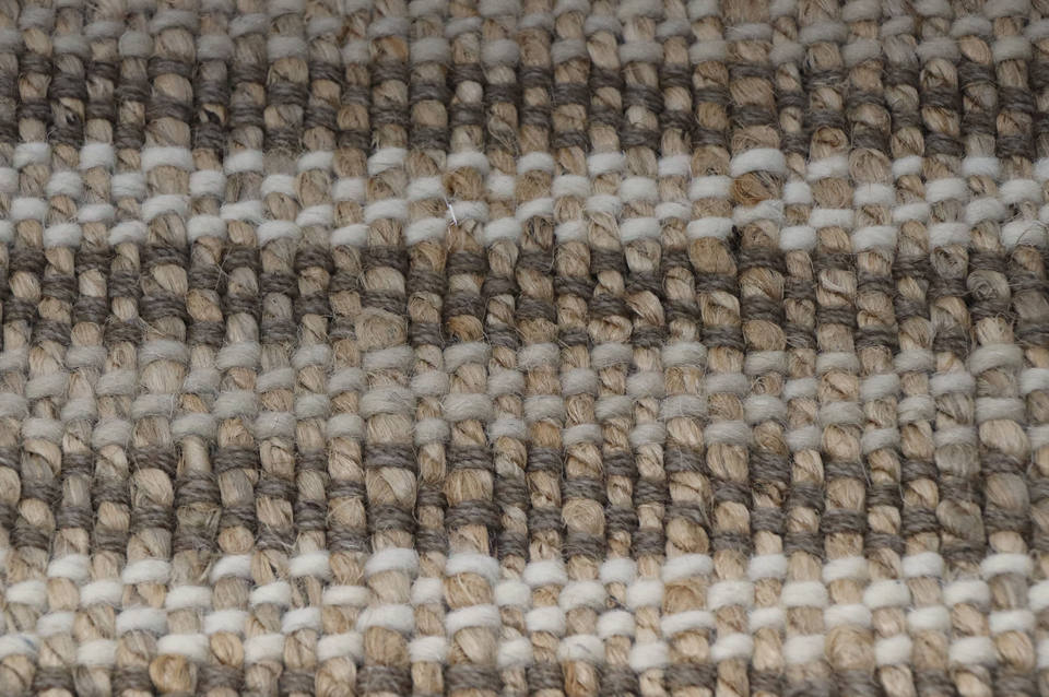Modern Geometrical Stripes Tassel Design Beige Grey White Thick Reversible Jute Cotton Hand Woven Area Rug Trellis Pattern