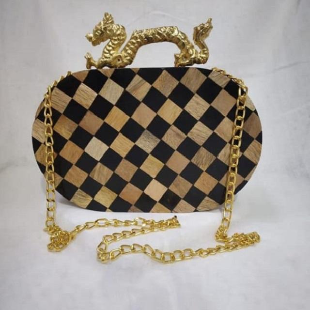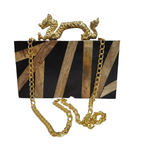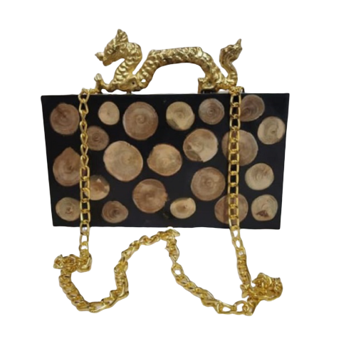 Modern Glamour Handmade wooden & Resin Epoxy Box Clutch dragon Luxury Boho Evening Bag with Shimmer Finish for Stylish Women