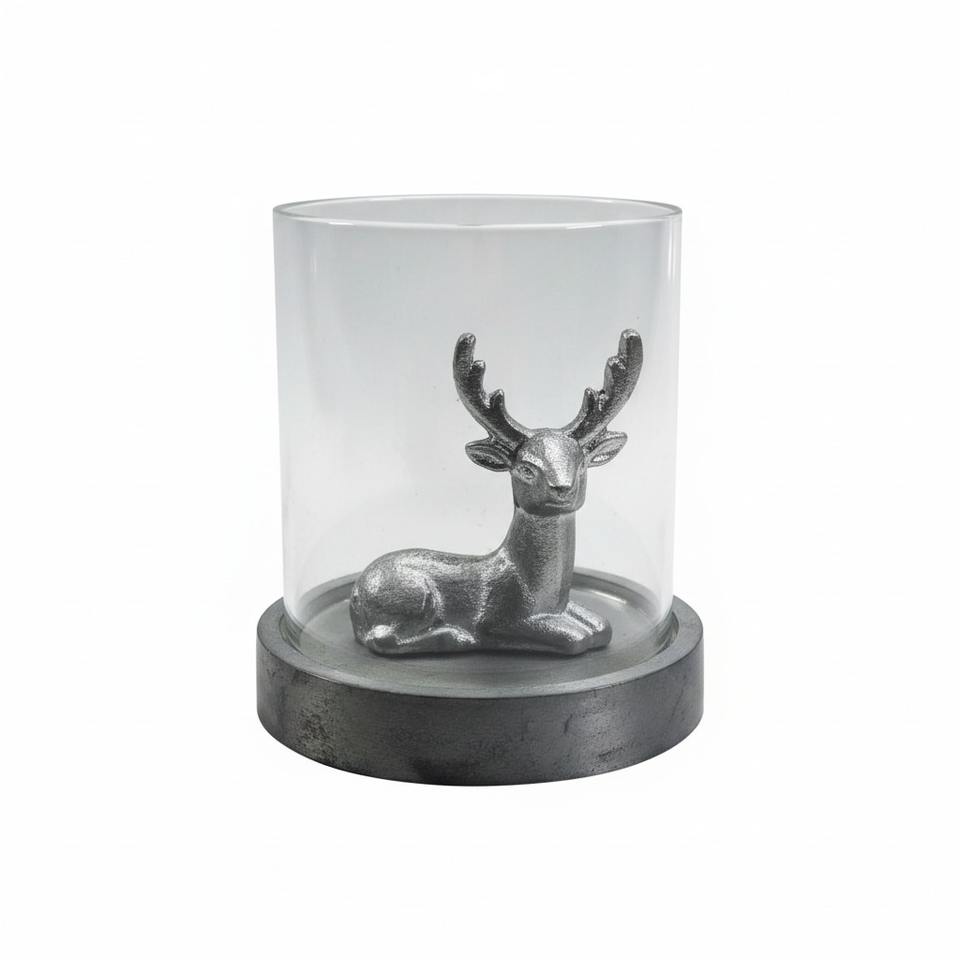 Modern Glass Candle Holder with Silver Christmas Tree Design Decorative Tabletop Lantern for Home Living Room Decor