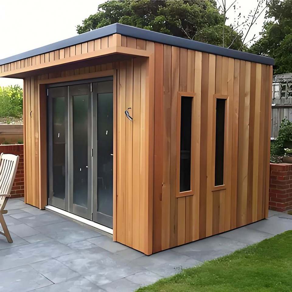 Modern Glass Door Garden Spa Sauna Cabin - Outdoor Cedar Wood with LED Lights